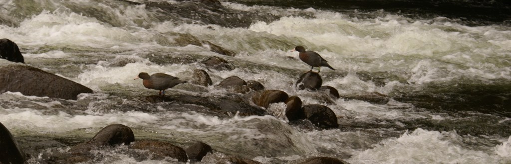 Because they share habitat and food source with fly fishers in particular, it is likely that keen Riversmiths will encounter the Whio, particularly on central north island and east coast rivers. It is important to give them space, as the pair (usually) you come across will be the only breeding pair for a kilometre or more of their stretch of the river.