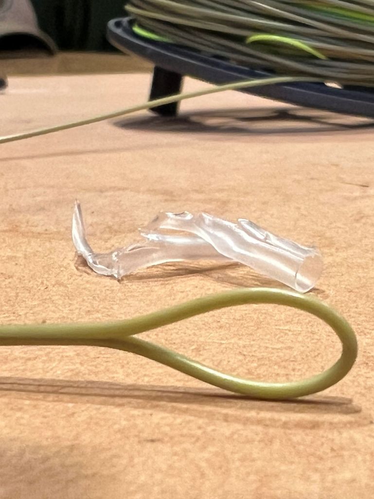 Mine had suffered a break in the outer layer of the line above the loop, leading it to act a little odd in the cast, and not quite be as floaty as a floating line should be.