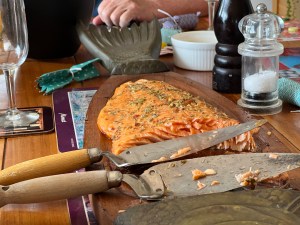 Cooking a whole salmon fillet on a plank of fragrant wood is a path to maximum, lightly smoked flavour. Although at a glance this is a modern trend, this method traces its origins hundreds if not thousands of years; indigenous peoples of the Pacific Northwest cooked salmon on western red cedar over open fires. They appreciate salmon as a sacred gift from the water, and the first catch of the season is celebrated with songs and dancing.