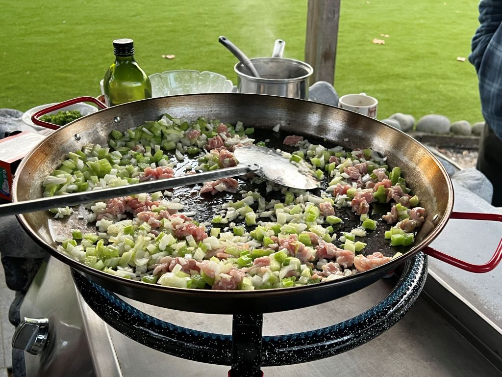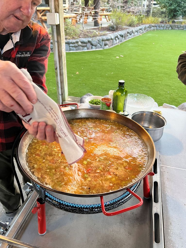 Paella is a great social dish. While it is cooking a fair amount of discussion is often had