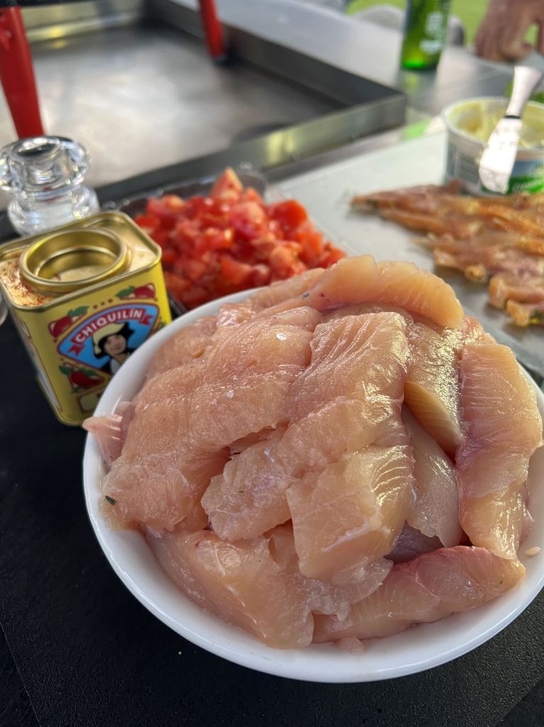 Ideally the rice on the bottom of the pan will be taking on a little brownness; this is called ‘the Socarrat’ and greatly adds to the flavour and enjoyment of a Paella.